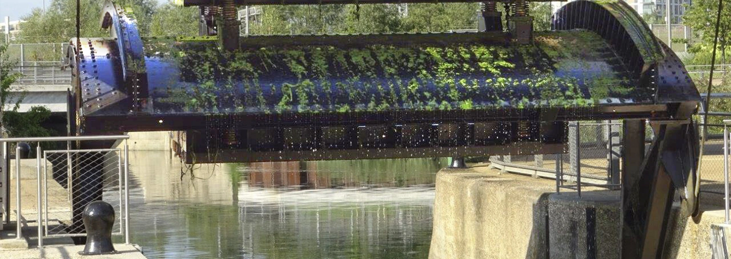 Carpenter’s Lock in London was constructed in 1934 and, at the time, was considered revolutionary. The giant radial gates allowed a lock keeper to regulate the flow of water from the Waterworks River to the City Mill channel and keep the water level on both sides below the danger point.