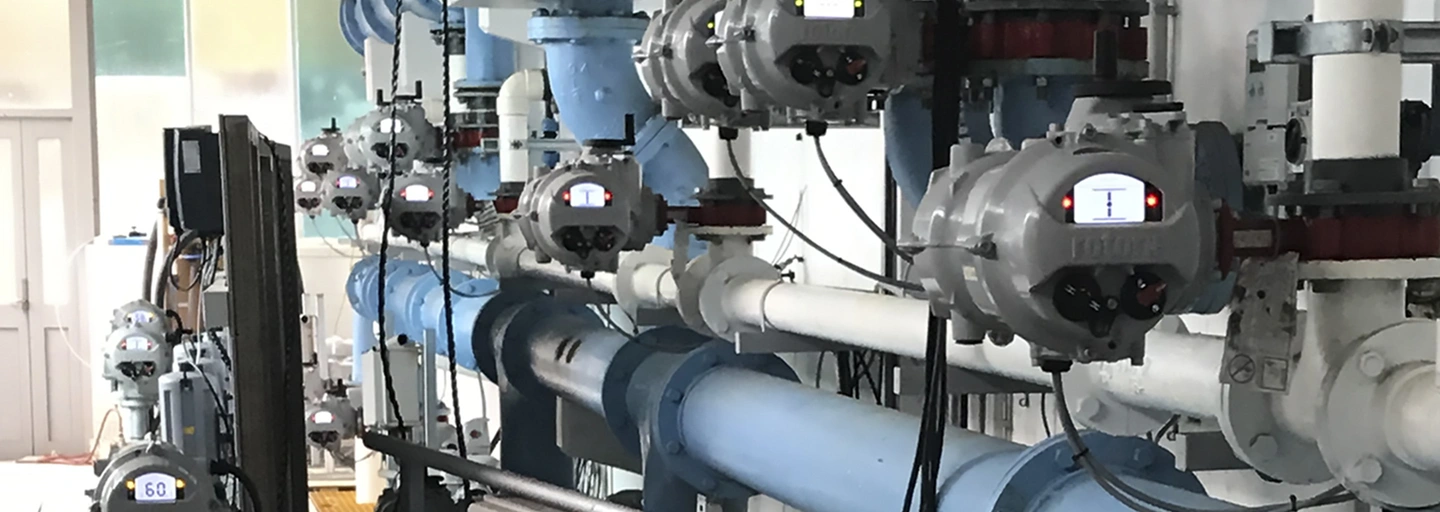 A solution was designed using Rotork IQT and IQS actuators. Rotork supplied these with stainless steel pedestals where required. The supplied IQ actuators provide control of filters, as well as the chemical dosing and storage of potable water.