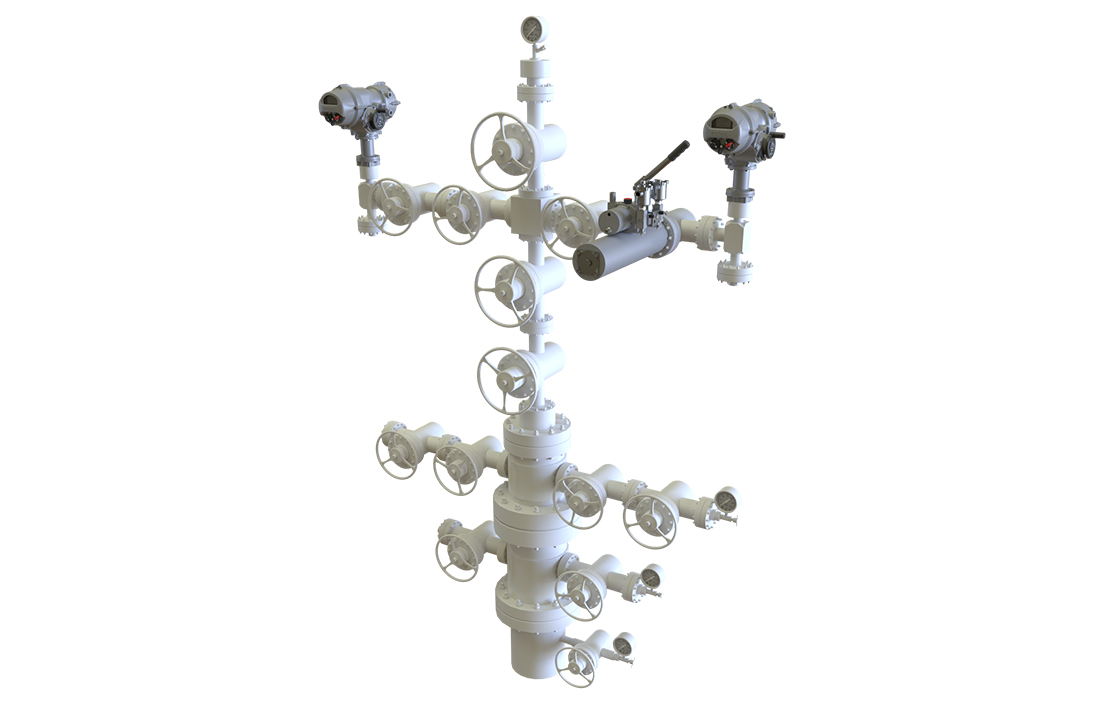 An oil and gas production tree (or Christmas tree) is an assembly of valves, spools and fittings that provide flow control of an oil or gas well.